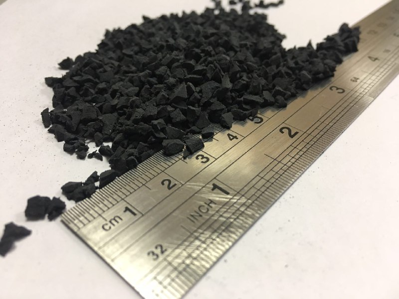 Резиновая крошка мелкой фракции предназначена для создания верхнего напыляемого слоя спортивных покрытий и для засыпки искусственного газона. Гранулят расфасован в биг беги. Масса резиновой крошки в одном мешке — 1000 кг.